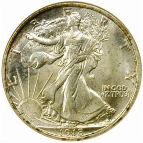 <style type="text/css"> body, td, th { font-family: Arial, Helvetica, sans-serif; font-size: 12px; color: #482424; margin: 0px; padding: 0px; } #header { background-image: url(http://www.bowersandmerena.com/ebay/images/template_v3_01.gif); clear: both; background-color: #590303; border-top-width: 2px; border-top-style: solid; border-top-color: #B38C4F;}#header #header_wrapper { height: 75px; clear: both; width: 800px; margin-right: auto; margin-left: auto; background-image: url(http://www.bowersandmerena.com/ebay/images/template_v3_03.gif); background-repeat: no-repeat; background-position: right; color: #F3EDCC;}#header #header_wrapper #header_logo { float: left; height: 75px; width: 444px; background-image: url(http://www.bowersandmerena.com/ebay/images/template_v3_02.gif); background-repeat: no-repeat; font-size: 10px; text-transform: capitalize; color: #B38C4F;}#header #header_wrapper #header_right { float: left; height: 75px; width: 356px; text-align: right;}#header #header_wrapper #header_right #headerLoginBtn { margin-bottom: 30px;}#header #header_wrapper #header_right input#txtSearch { color: #B49056; border: 1px solid #B49056; width: 175px; padding-top: 3px; padding-right: 3px; padding-bottom: 4px; padding-left: 3px;}#nav { height: 37px; background-image: url(http://www.bowersandmerena.com/ebay/images/template_v3_05.gif); clear: both;}#nav #nav_wrapper { height: 35px; width: 800px; margin-right: auto; margin-left: auto; border-left-width: 1px; border-left-style: solid; border-left-color: #B38C4F;}#nav #nav_wrapper a { padding-right: 15px; padding-left: 15px; border-right-width: 1px; border-right-style: solid; border-right-color: #B38C4F; height: 25px; padding-top: 10px; display: block; float: left; text-decoration: none; font-weight: bold; color: #5D0303;}#nav #nav_wrapper a:hover { color: #B38C4F;}#nav #nav_wrapper #search { float: right; padding-top: 7px;}#nav #nav_wrapper #search #txtSearch { font-family: Arial, Helvetica, sans-serif; font-size: 10px; text-transform: uppercase; color: #D2AE75; border: 1px solid #B38C4F; padding: 3px;}#content_bgd { background-image: url(http://www.bowersandmerena.com/ebay/images/template_v3_09.gif); background-repeat: repeat-y; background-position: center; padding-top: 15px; padding-bottom: 15px; background-color: #FBFBDB;}#content_wrapper { clear: both; height: auto; width: 800px; margin-right: auto; margin-left: auto;}.LotDetailWhite{ line-height:normal; font-size:13px; font-family: arial,helvetica,sans-serif; color: White; font-weight: bold;}.LotDetailInformation{ line-height:normal; font-size: 13px; font-family: arial,helvetica,sans-serif;}.LotDetailMessage{ line-height:normal; font-size: 13px; font-family: arial,helvetica,sans-serif; color: red;}}tr.HeaderAuctionTitle td { color: #000000; font-weight: bold; padding: 2px; background-image: url(http://www.bowersandmerena.com/ebay/images/template_v3_05.gif); background-repeat: repeat-x; border-bottom-width: 1px; border-bottom-style: solid; border-bottom-color: #B38C4F;}table.AuctionSummary a, table.AuctionSummary a:link, table.AuctionSummary a:visited { color: #0000FF; text-decoration: none;}}td.tableHeaderLeft { border-left-width: 1px; border-left-style: solid; border-left-color: #B38C4F;}td.tableHeaderRight { border-right-width: 1px; border-right-style: solid; border-right-color: #B38C4F;}td.tableCellMiddle { border-left-width: 1px; border-left-style: solid; border-left-color: #B38C4F; border-right-width: 1px; border-right-style: solid; border-right-color: #B38C4F; padding: 5px;}tr.footer td { border-top-width: 1px; border-top-style: solid; border-top-color: #B38C4F;}</style></head><body><div id="header"> <div id="header_wrapper"> <div id="header_logo"> </div> <div id="header_right"> </div> </div></div><div id="nav"> <div id="nav_wrapper"> <a href="http://www.bowersandmerena.com">Our eBayLive Auctions</a> <a href="#PaymentInfo">Payment Information</a> <a href="#ShippingInfo">Shipping Information</a> <a href="#About">About Bowers and Merena</a> </div></div><div id="content_bgd"> <div id="content_wrapper"> <table width="100%" border="0" cellpadding="5" cellspacing="0" class="AuctionSummary"> <tbody> <tr class="HeaderAuctionTitle" style="height: 25px;"> <td align="left" class="tableHeaderLeft" > </td> <td align="center" class="tableHeaderRight"> <span style="font-size: large;">Lot #674. 1918 Walking Liberty Half Dollar. MS-65 (NGC).</span> </td> </tr> <tr> <td colspan="3" class="tableCellMiddle"> An underrated issue, the 1918 is surprisingly elusive for a Philadelphia Mint Walking Liberty Half Dollar with 6.6 million pieces produced. This issue is rarer than the lower-mintage 1916 and 1916-D in all Mint State grades, and Gems are also more elusive than those of the 1917, 1929-D, 1929-S and 1933-S deliveries. Softly frosted surfaces are veiled in light golden-silver iridescence with speckles of copper-russet patina that appear to drift toward the rims. Well struck throughout, and free of individually mentionable abrasions.