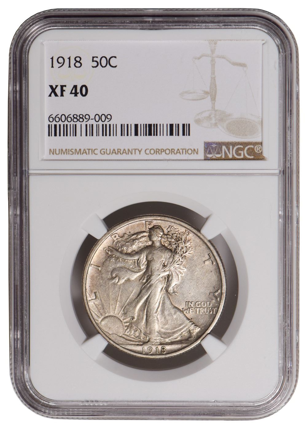 One 1918 Walking Liberty Half Dollar NGC XF40.
