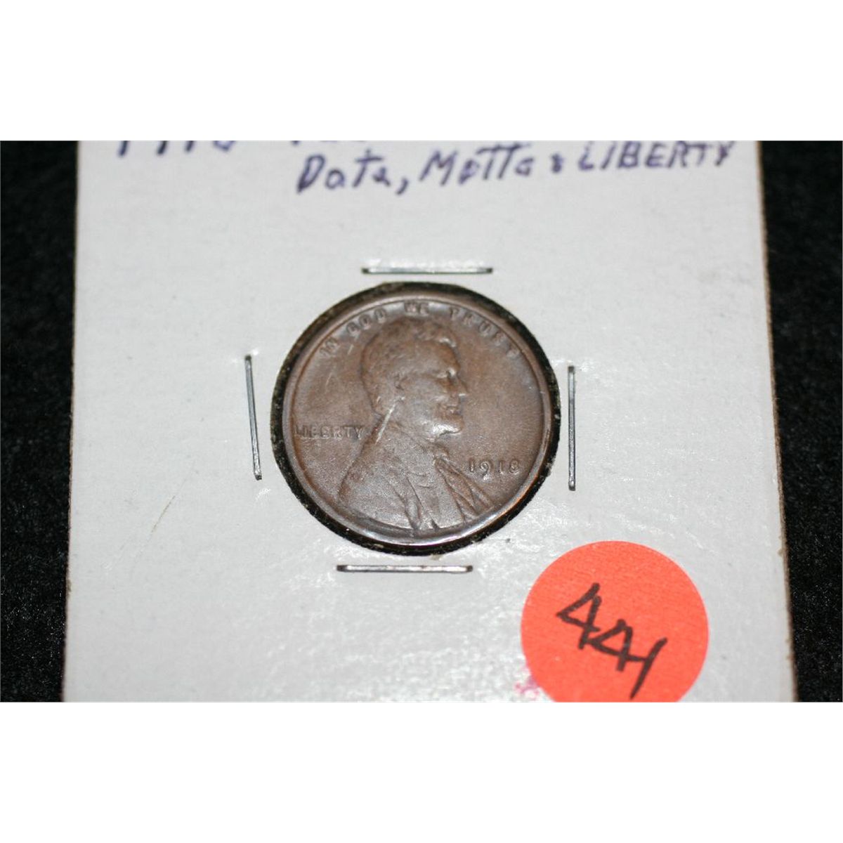 1918 Wheat Back penny, push doubled data, motto & Liberty