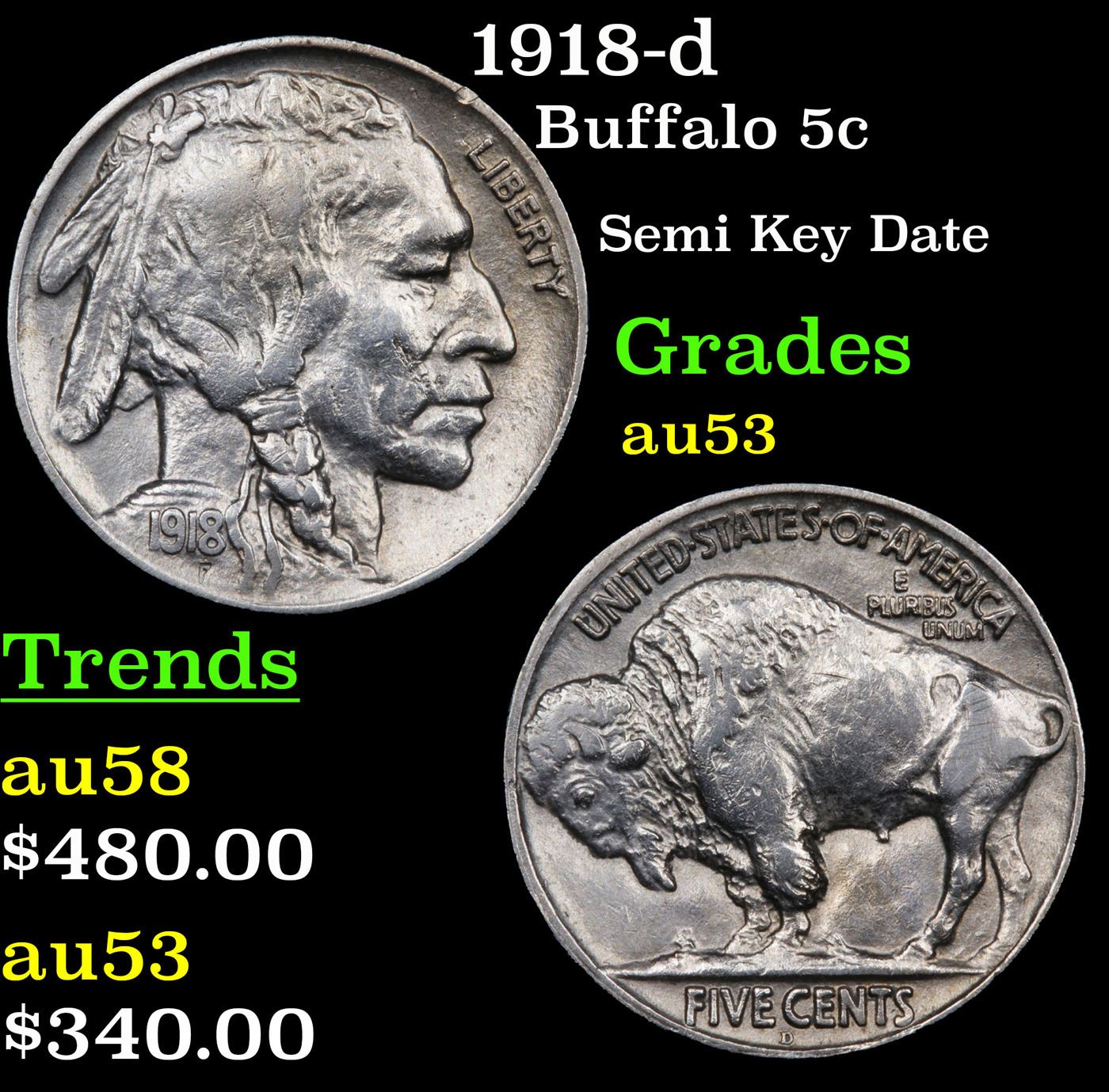 1918-d Buffalo Nickel 5c Grades Select AU.