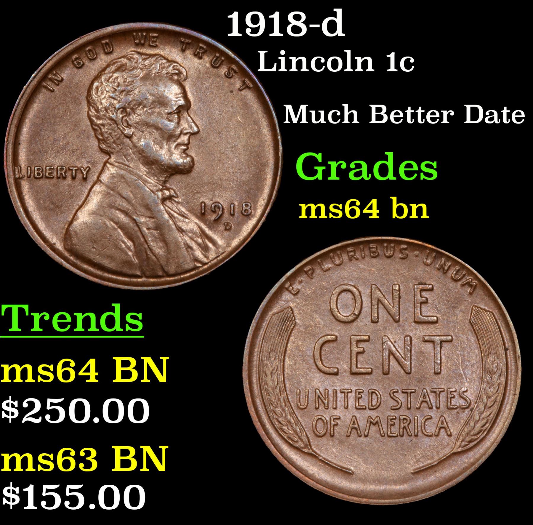 1918-d Much Better Date . Lincoln Cent 1c Grades Choice Unc BN.