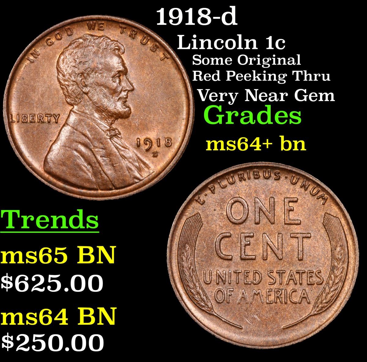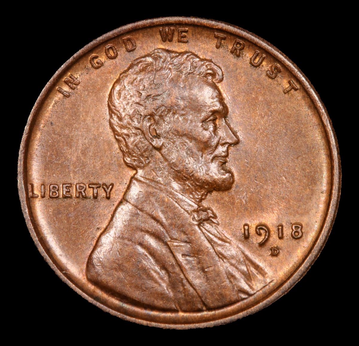 1918-d Some Original Red Peeking Thru Very Near Gem Lincoln Cent 1c Grades Choice+ Unc BN.