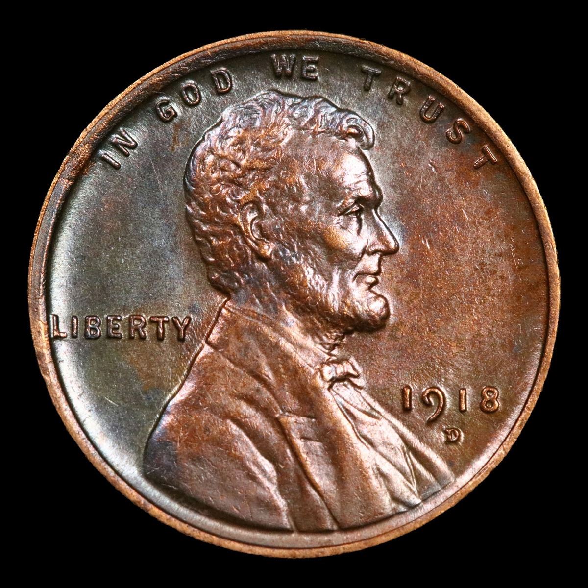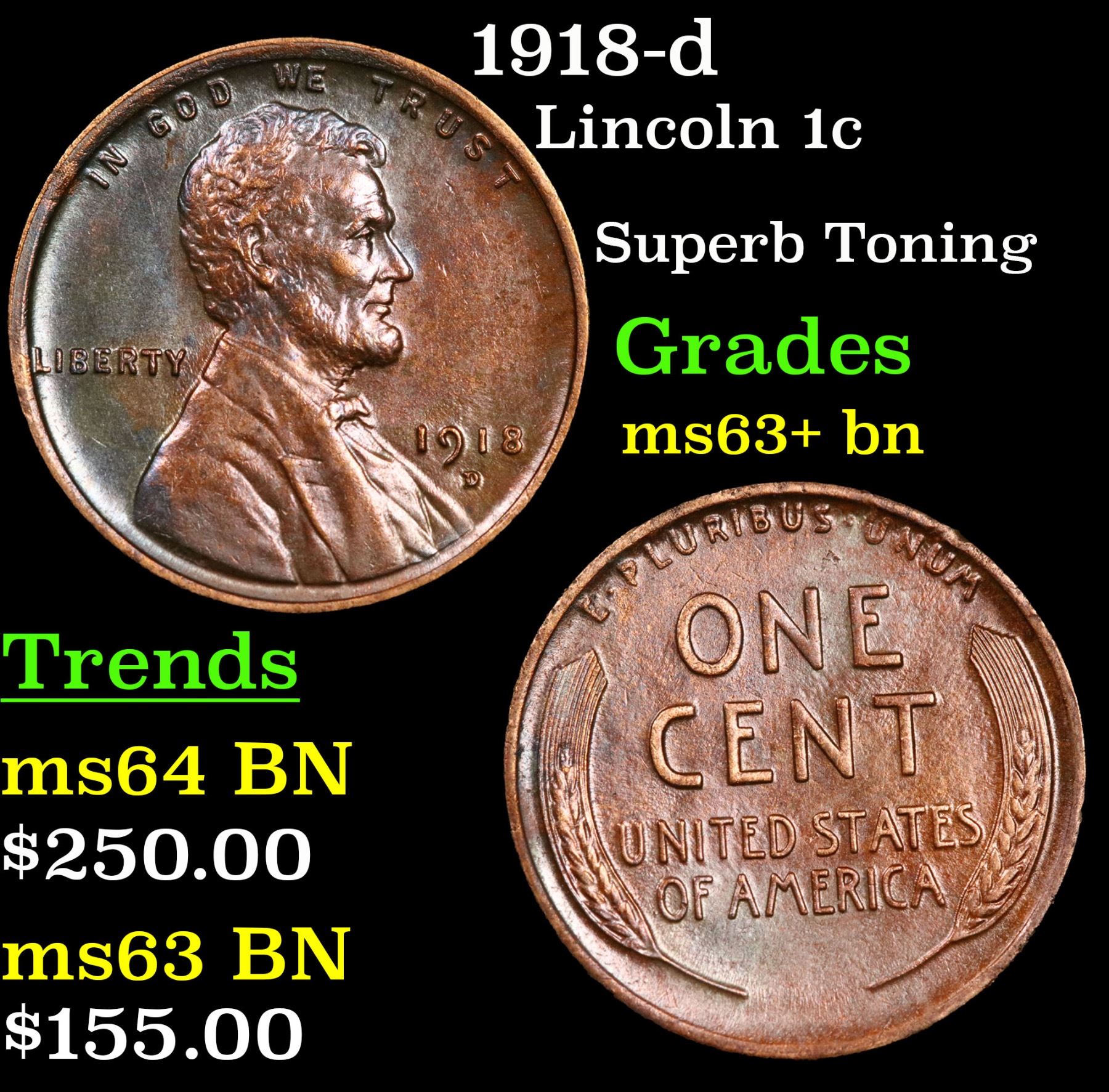 1918-d Superb Toning . Lincoln Cent 1c Grades Select+ Unc BN.