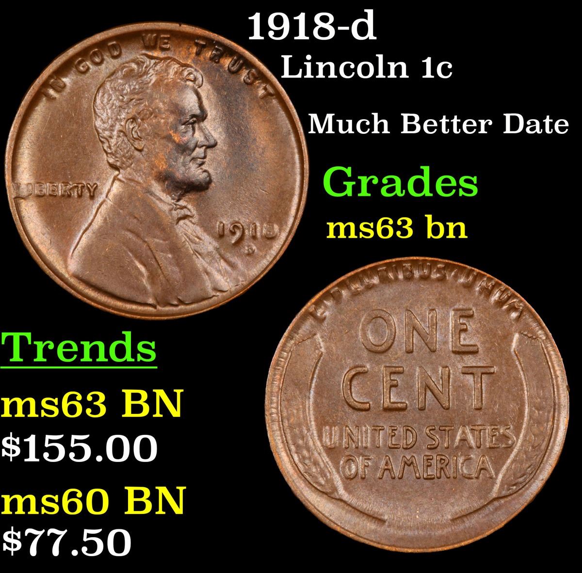 1918-d Lincoln Cent 1c Grades Select Unc BN.