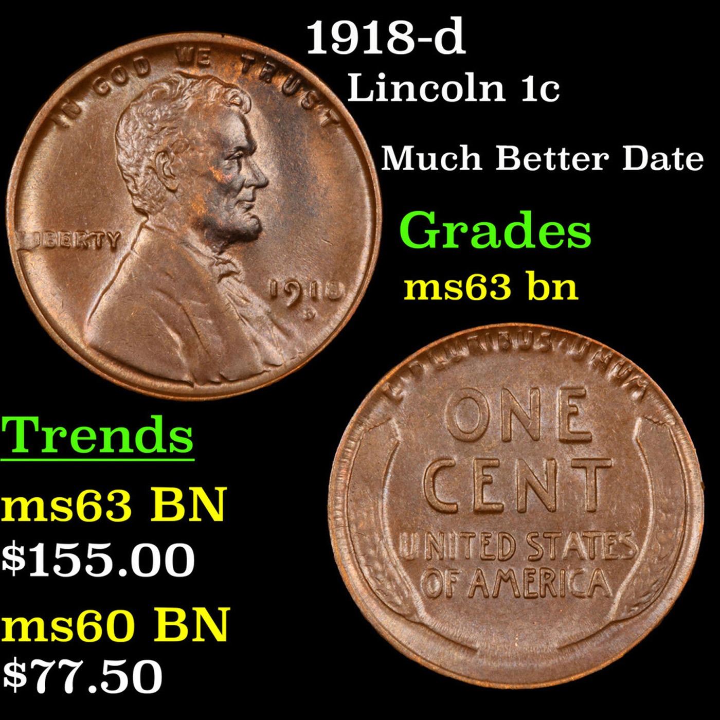 1918-d Lincoln Cent 1c Grades Select Unc BN.