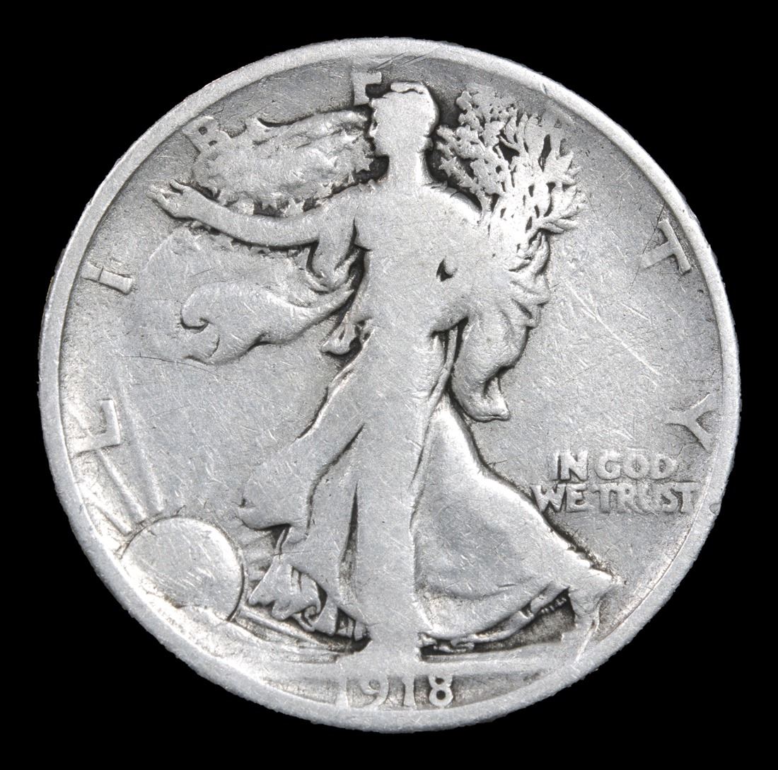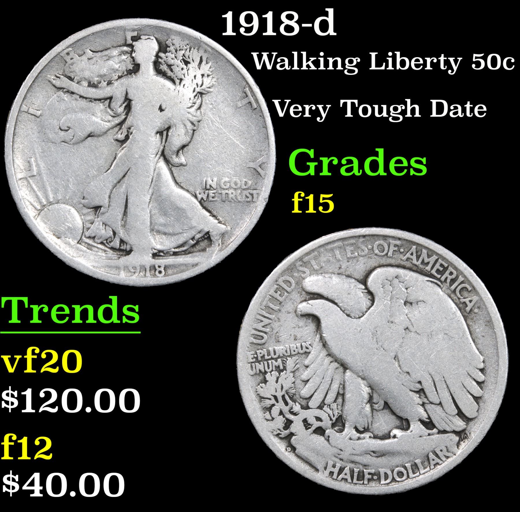 1918-d Walking Liberty Half Dollar 50c Grades f+. Very Tough Date