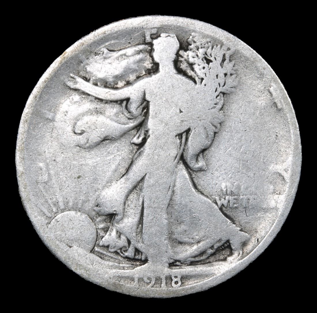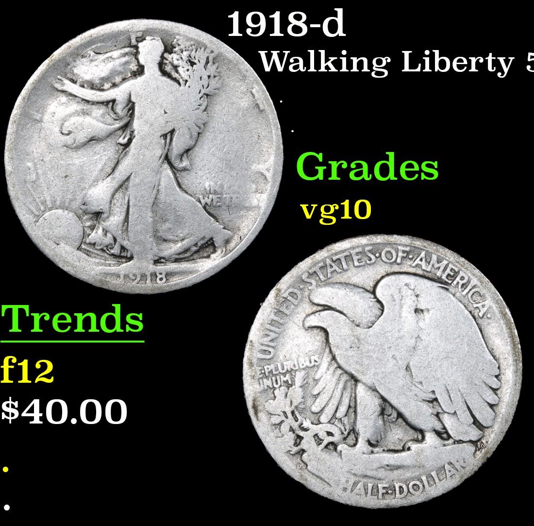1918-d . . Walking Liberty Half Dollar 50c Grades vg+.
