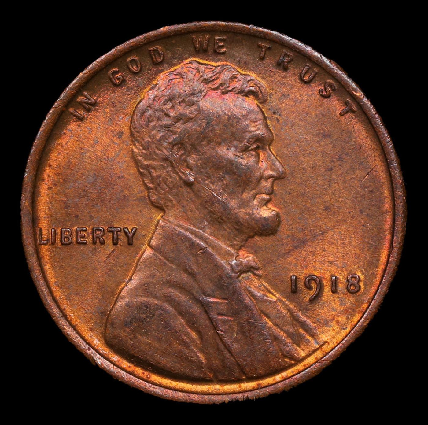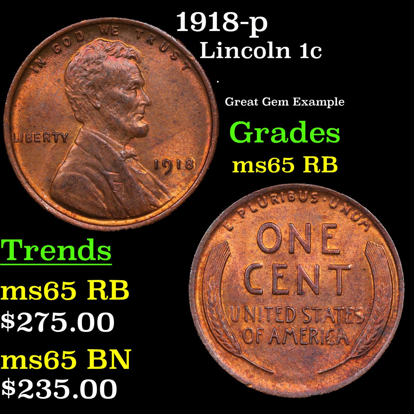 1918-p Lincoln Cent 1c Grades GEM Unc RB.
