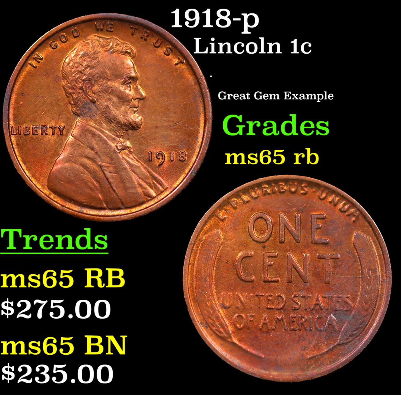1918-p Lincoln Cent 1c Grades GEM Unc RB.