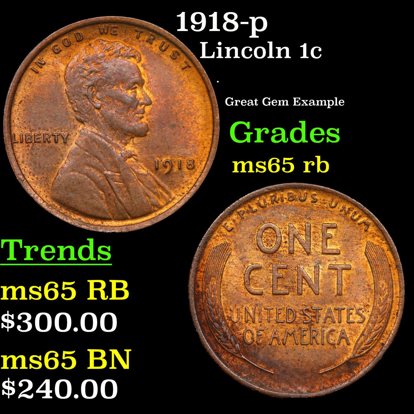 1918-p Lincoln Cent 1c Grades GEM Unc RB.
