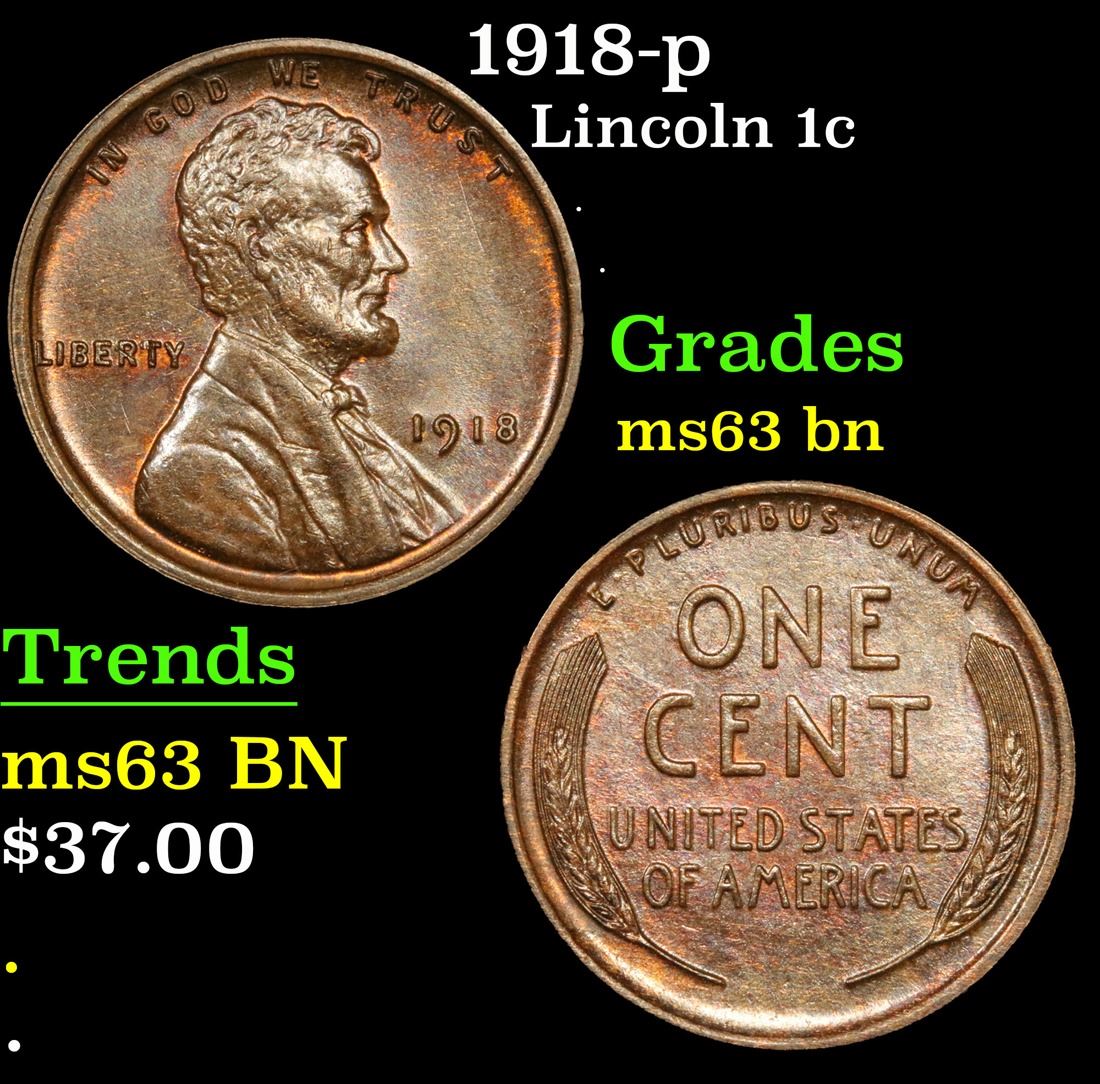 1918-p . . Lincoln Cent 1c Grades Select Unc BN. With an original mintage of over 288 million pieces, PCGS estimates that only 1200 remain in ms65 or better.