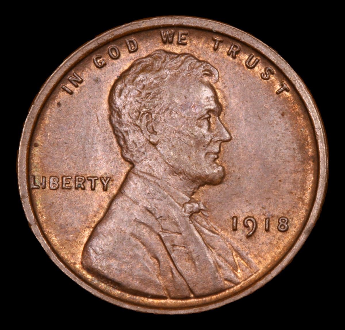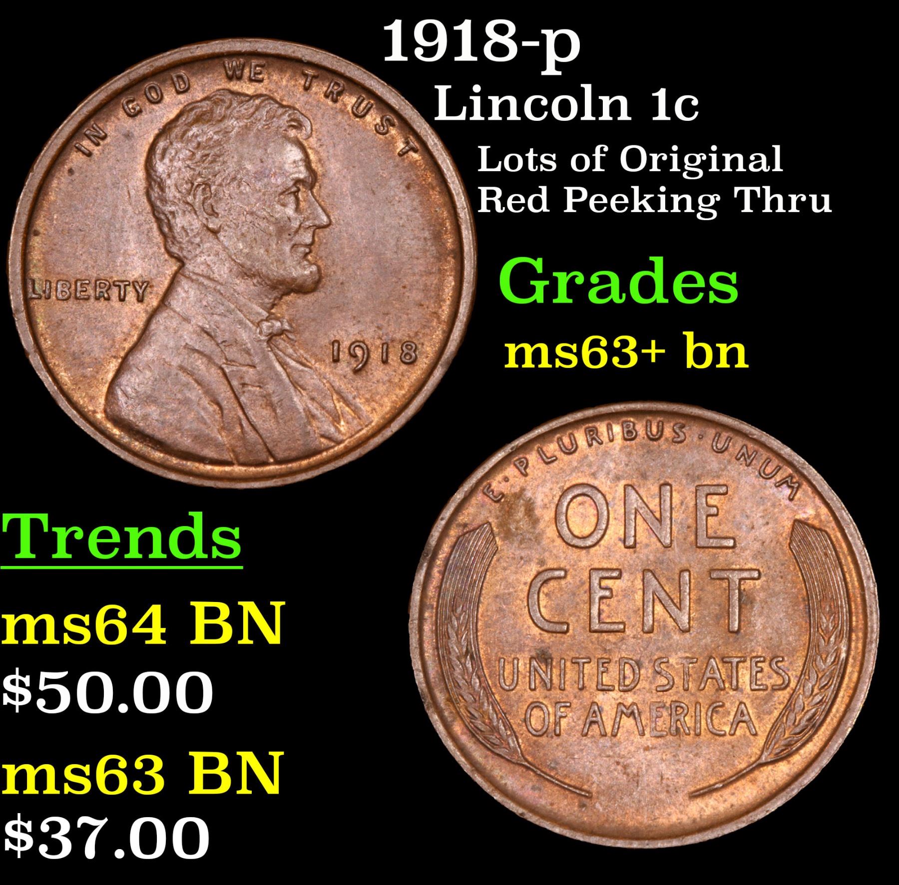 1918-p Lots of Original Red Peeking Thru . Lincoln Cent 1c Grades Select+ Unc BN.