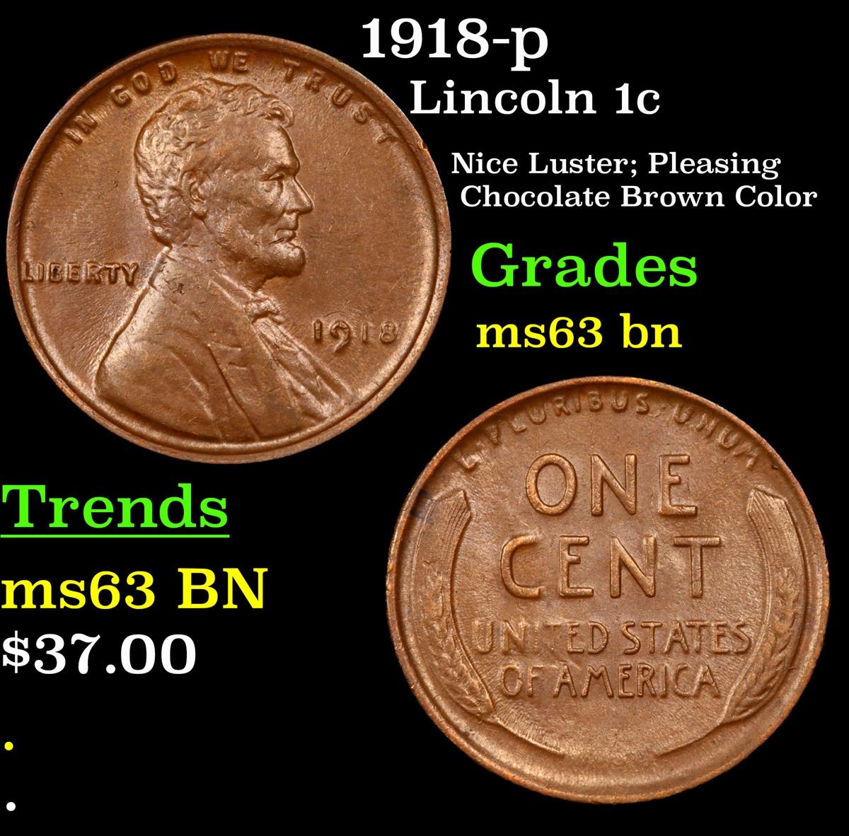 1918-p Lincoln Cent 1c Grades Select Unc BN.