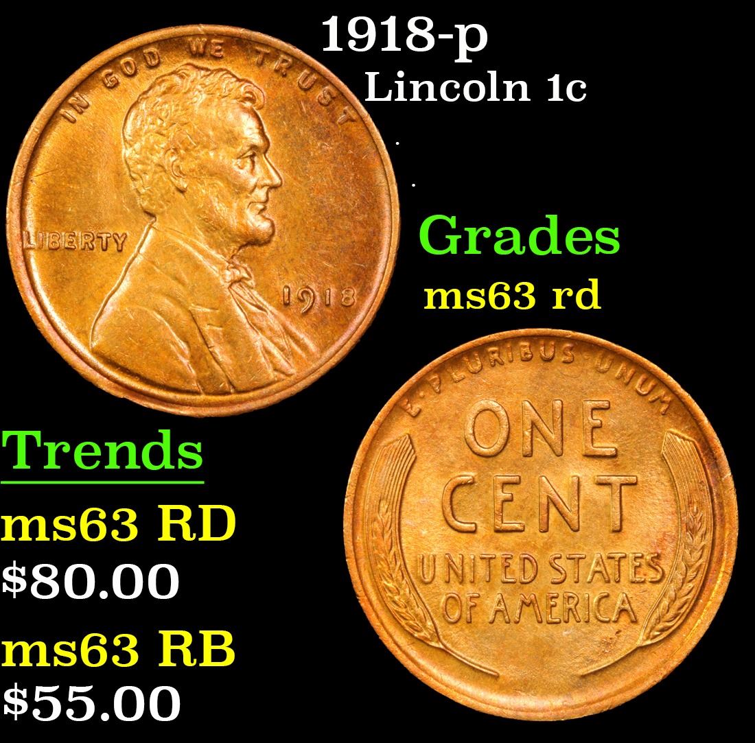 1918-p . . Lincoln Cent 1c Grades Select Unc RD. With an original mintage of over 288 million pieces, PCGS estimates that only 1200 remain in ms65 or better.