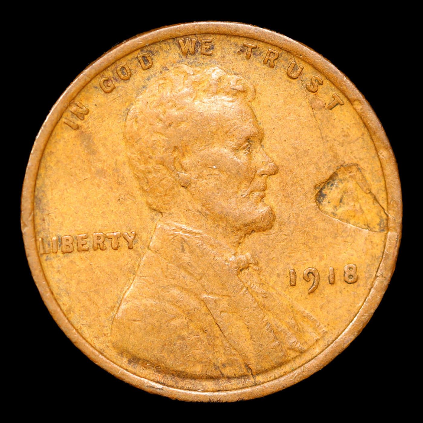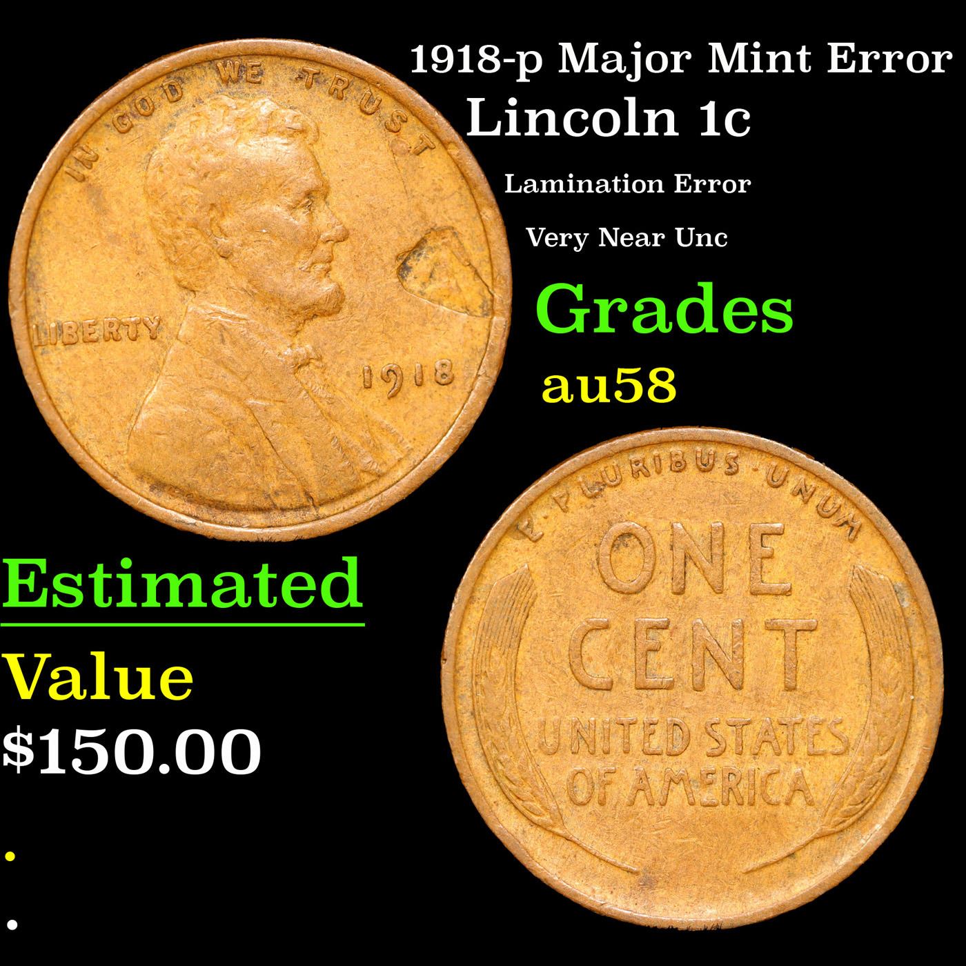 1918-p Major Mint Error Lincoln Cent 1c Grades Choice AU/BU Slider.