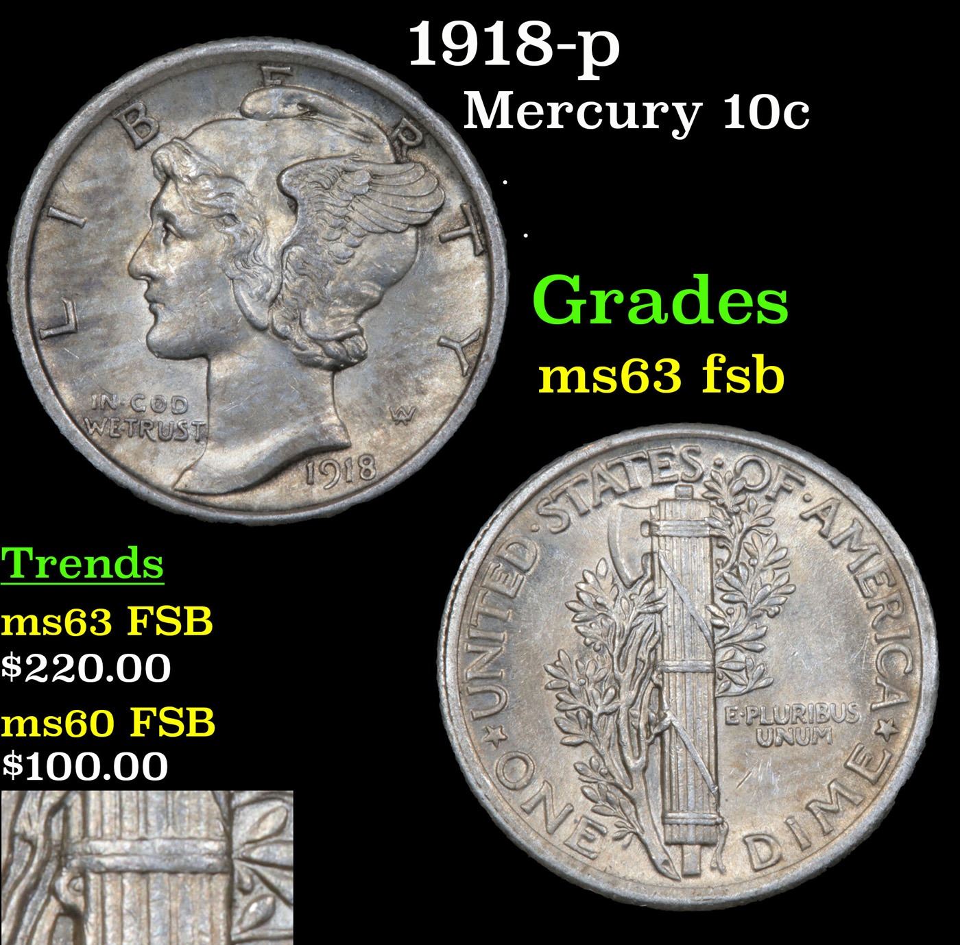 1918-p Mercury Dime 10c Grades Select Unc FSB.