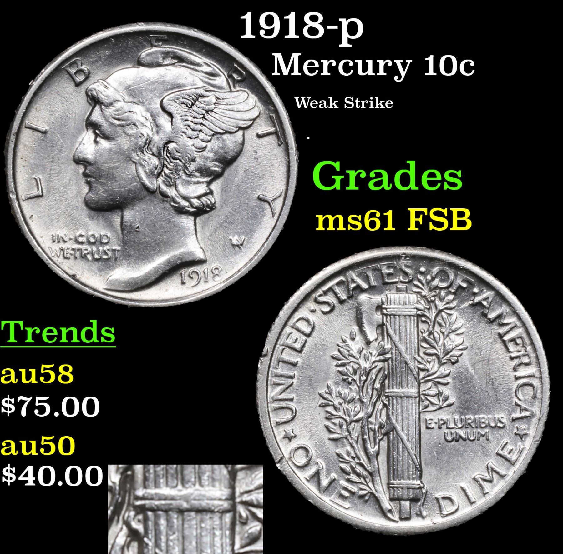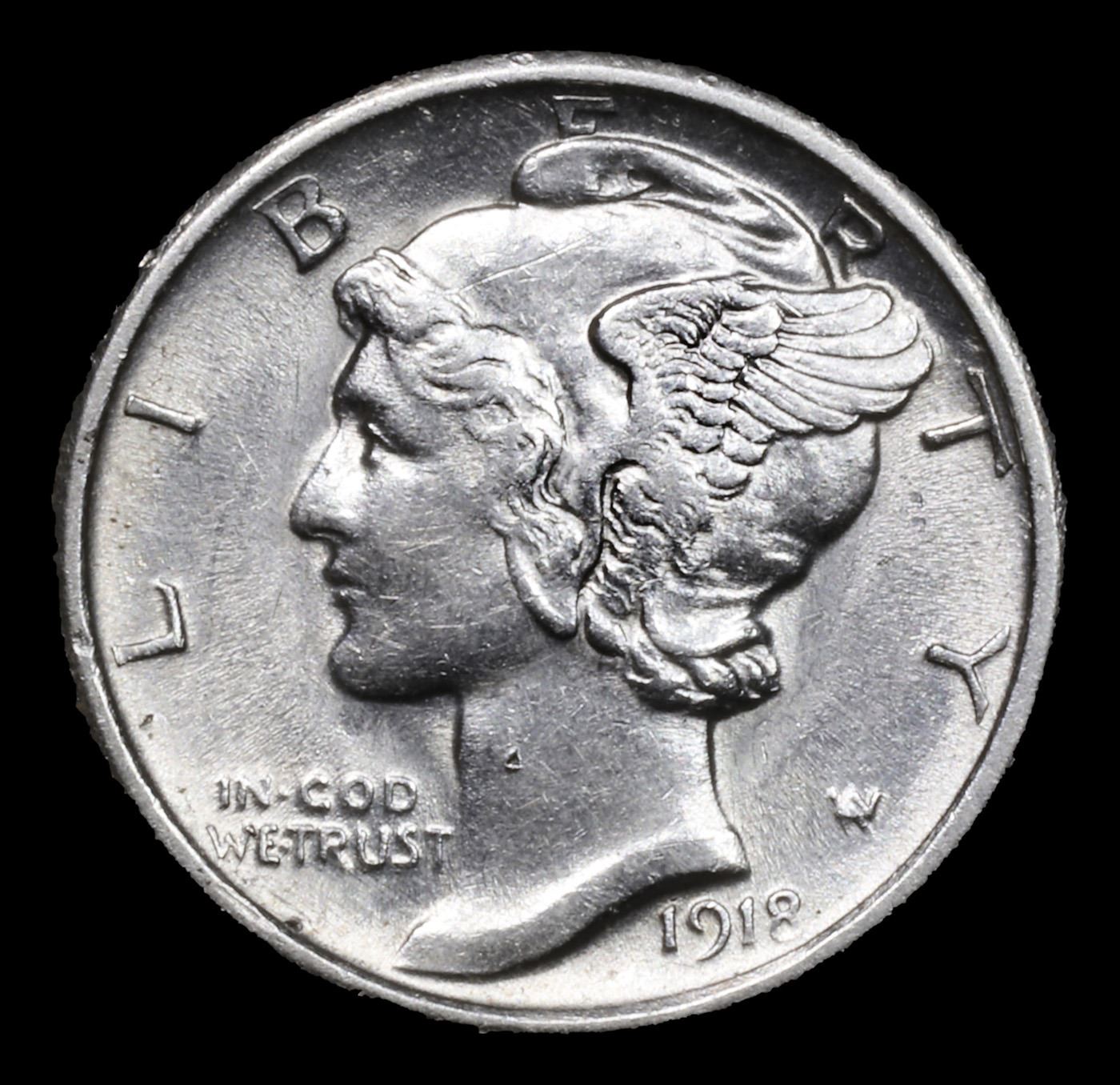 1918-p Mercury Dime 10c Grades Unc+ FSB.