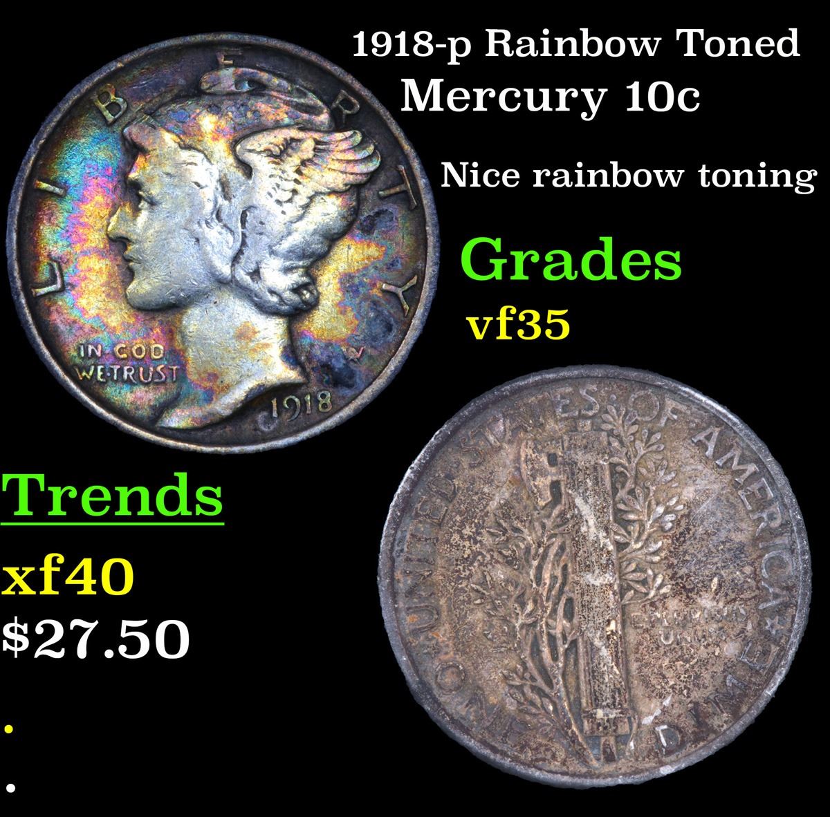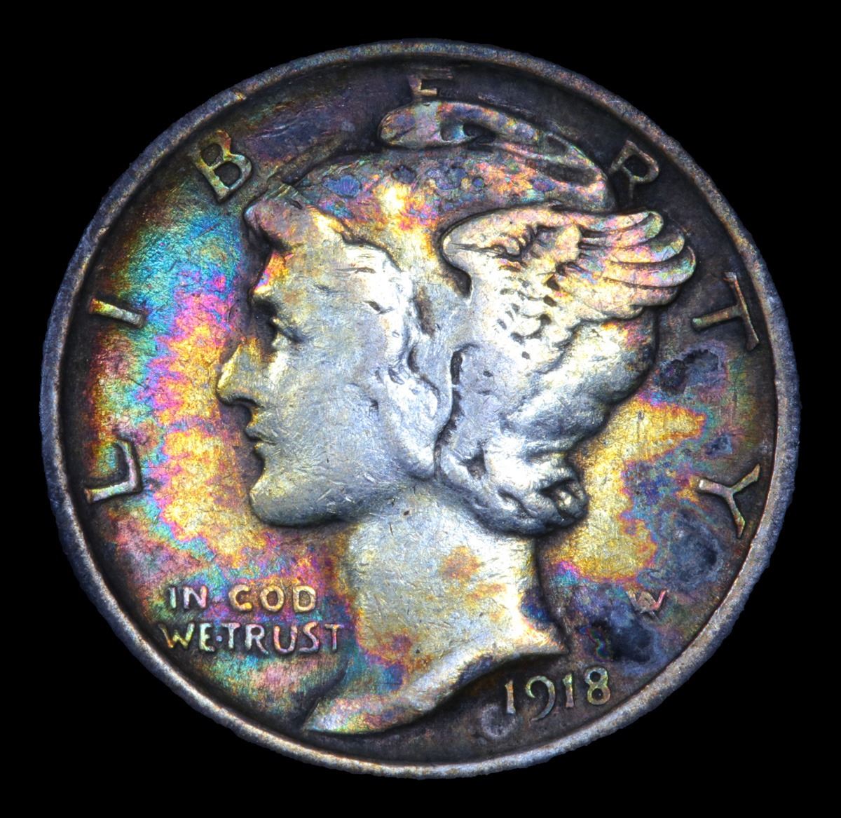 1918-p Rainbow Toned Mercury Dime 10c Grades vf++.