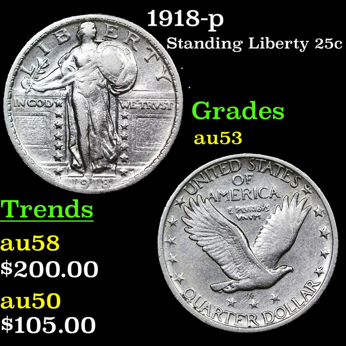 1918-p Standing Liberty Quarter 25c Grades Select AU.