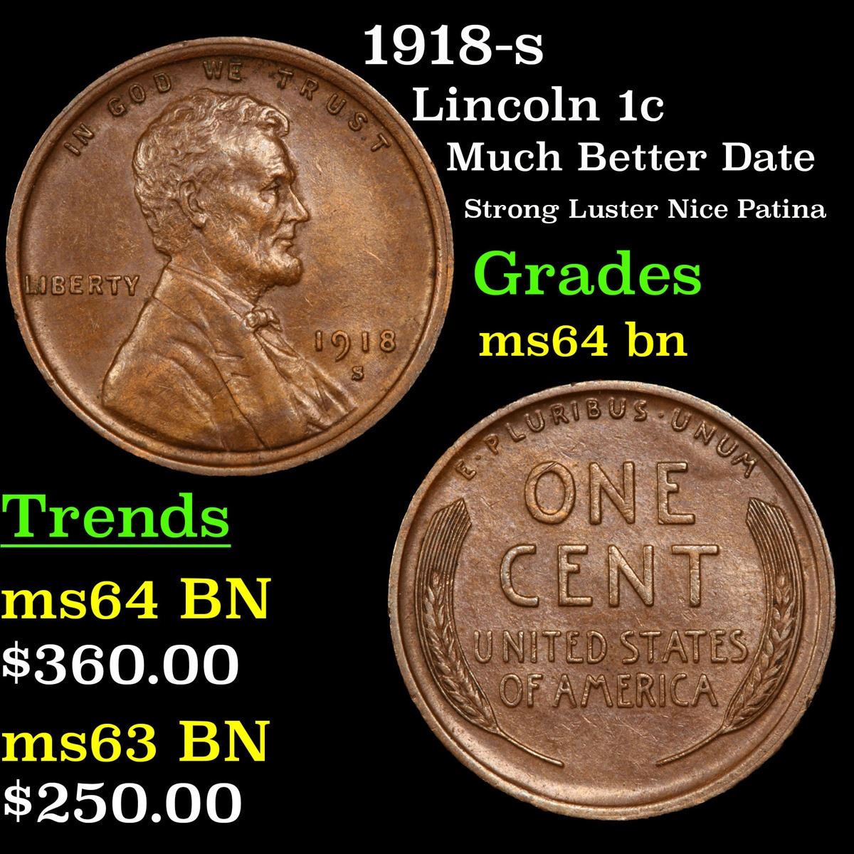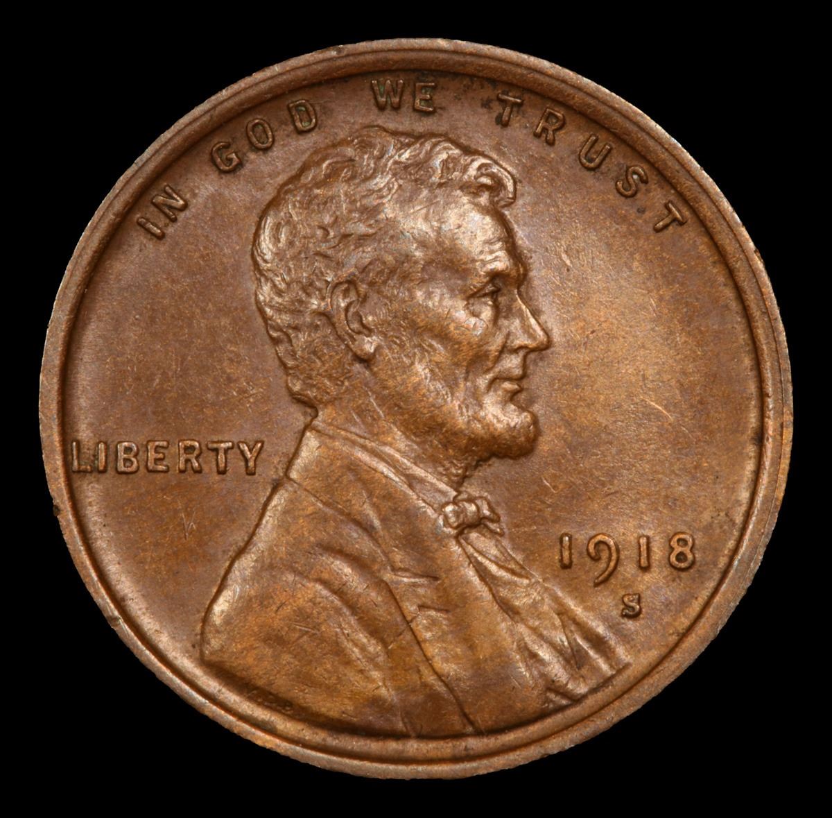 1918-s Lincoln Cent 1c Grades Choice Unc BN.