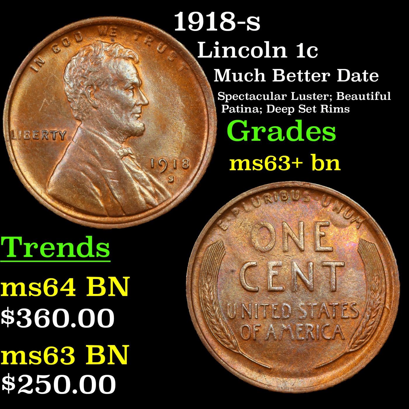1918-s Lincoln Cent 1c Grades Select+ Unc BN.