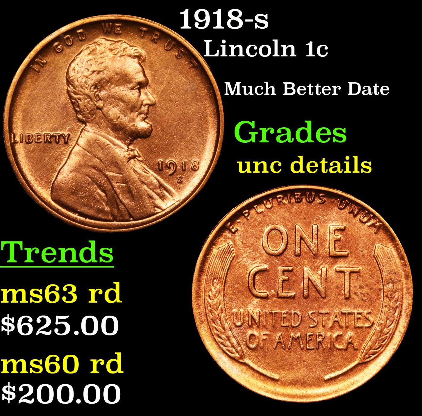 1918-s Lincoln Cent 1c Grades Unc Details.