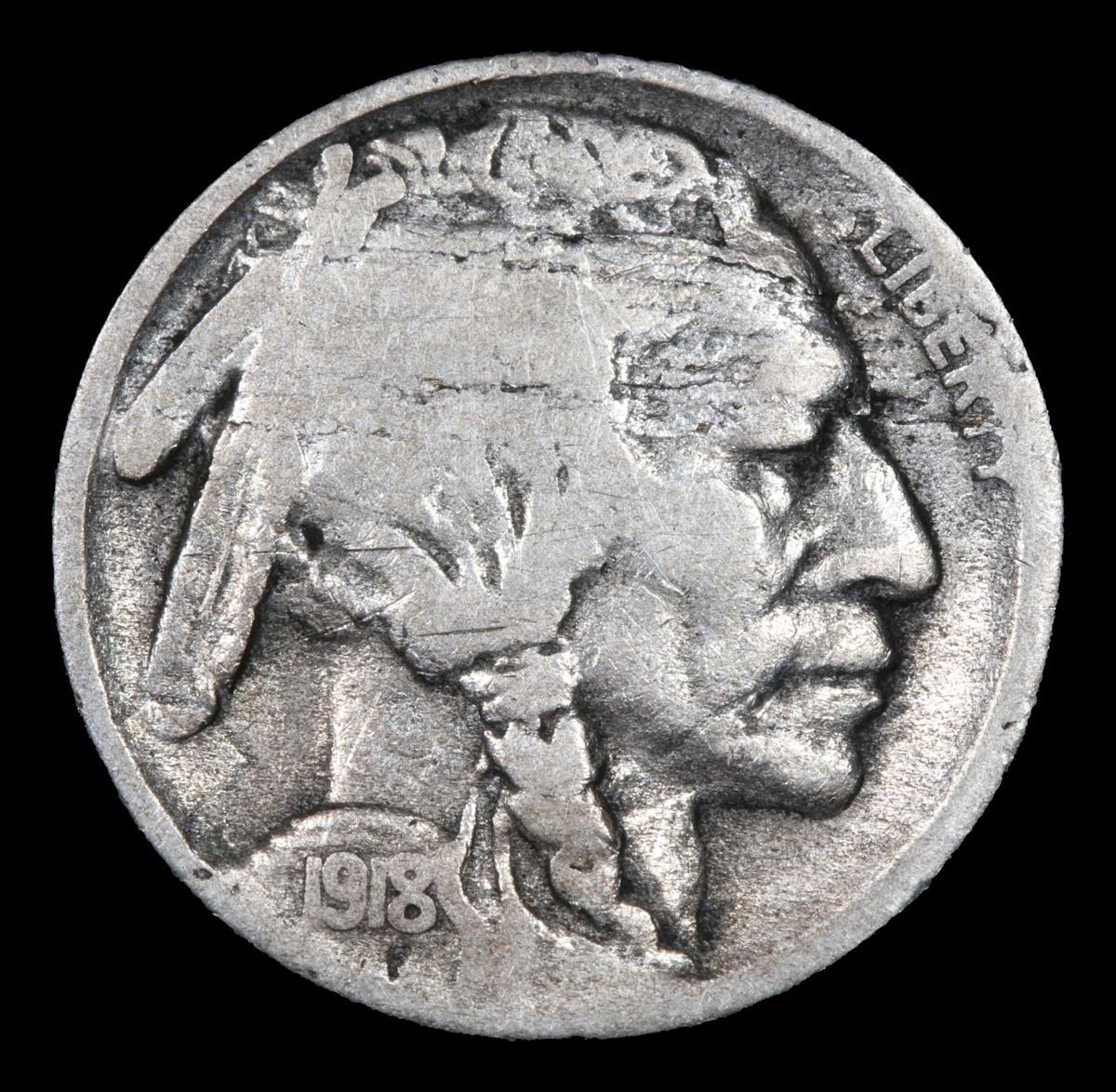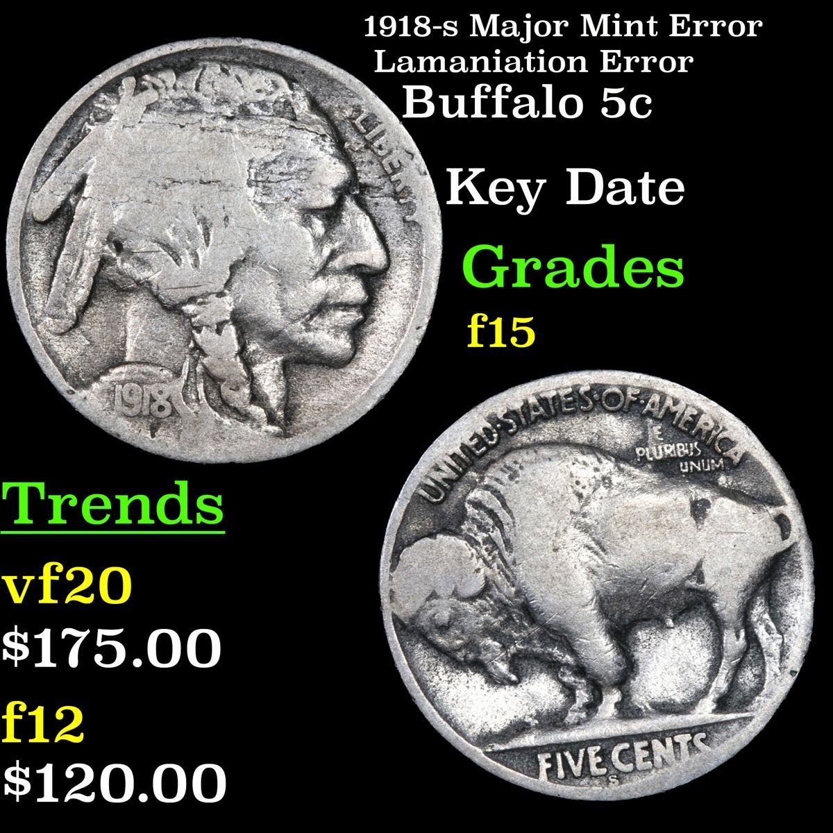 1918-s Major Mint Error Lamaniation Error Key Date . Buffalo Nickel 5c Grades f+.