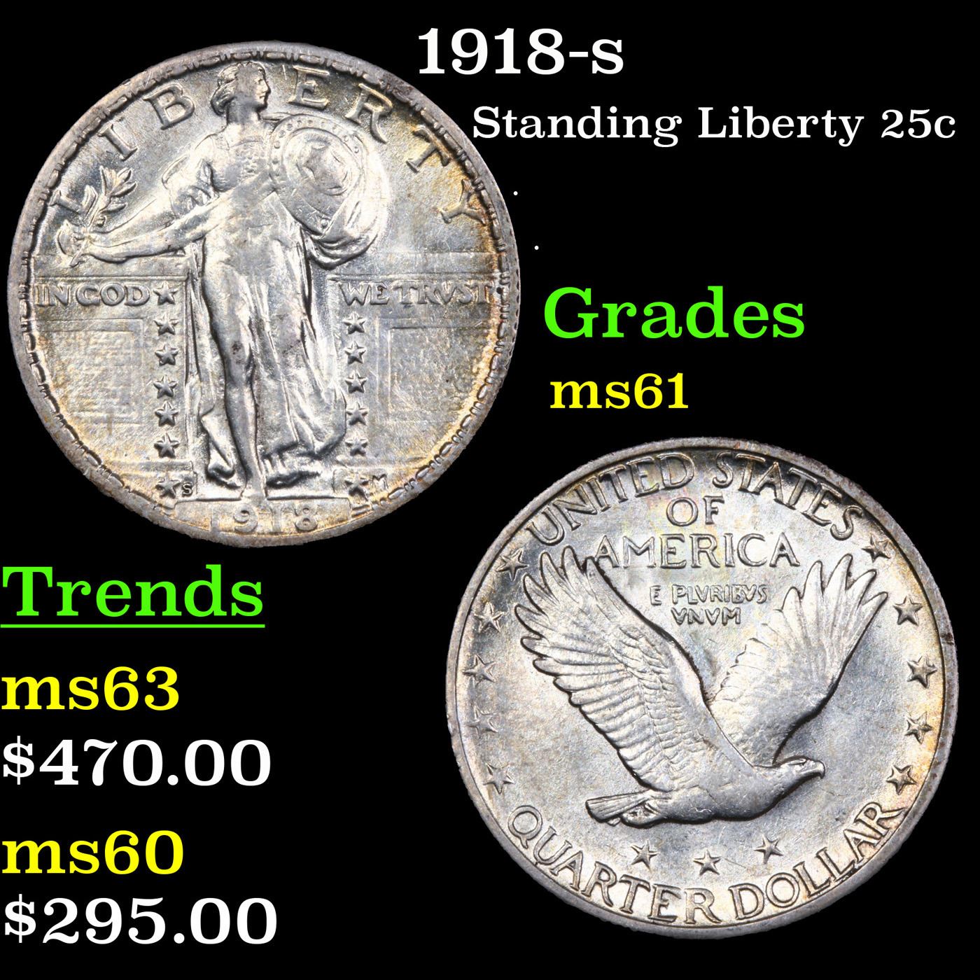 1918-s Standing Liberty Quarter 25c Graded BU+.