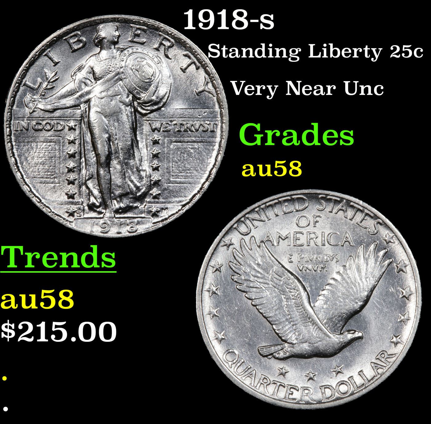 1918-s Standing Liberty Quarter 25c Grades Choice AU/BU Slider.