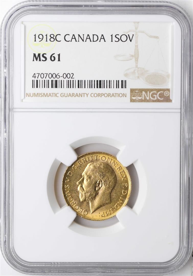 One 1918C Canada Sovereign Gold Coin NGC MS61. NGC Certified.