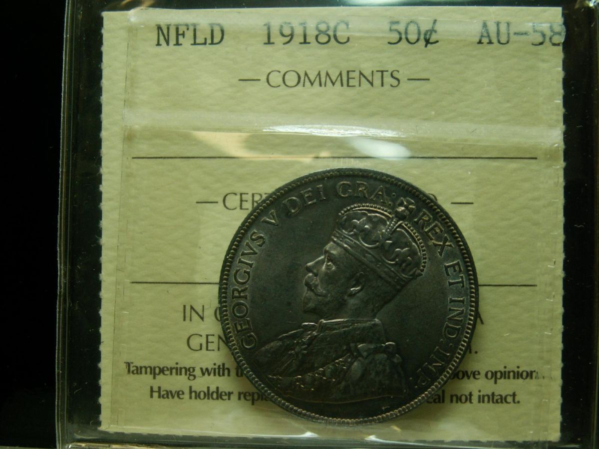 1918C NFLD 50¢ ICCS AU58