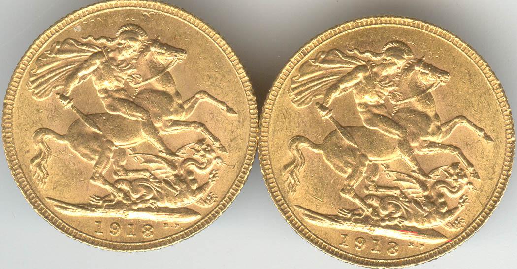 1918C, Sovereign, grade MS-60. Lot of 2 coins.