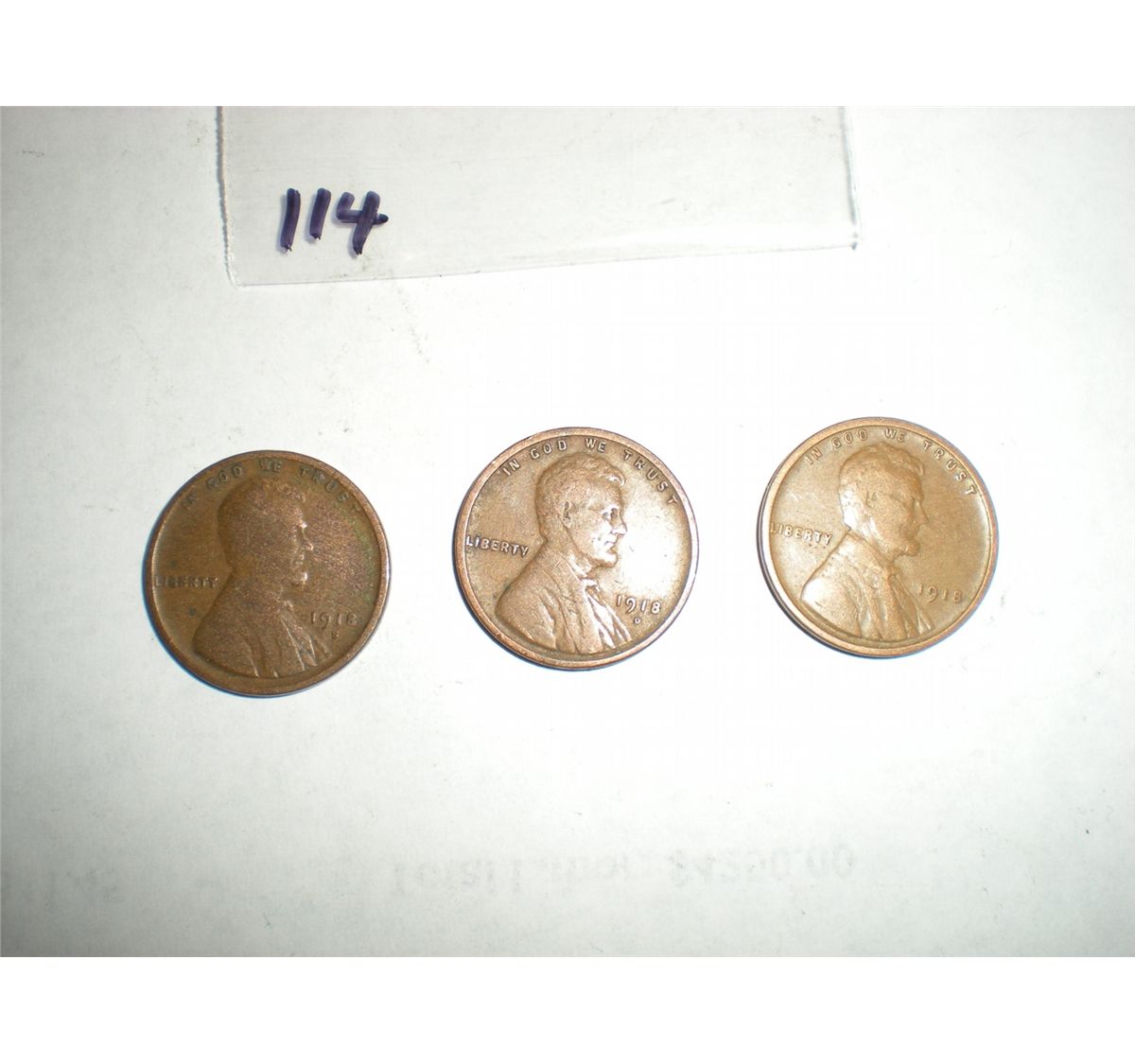 1918D,S,P wheat pennies three coin set***Coin, Currency, Gemstones & All Items Listed in this auction along with their respective Grades, Conditions and Values are not T&T Auctions Responsibility. Every person has their own opinion. It is the responsibility of the buyer to examine, grade and value each item in this auction to their own satisfaction before they bid. Bidders shall rely entirely on their own inspection and information before bidding.