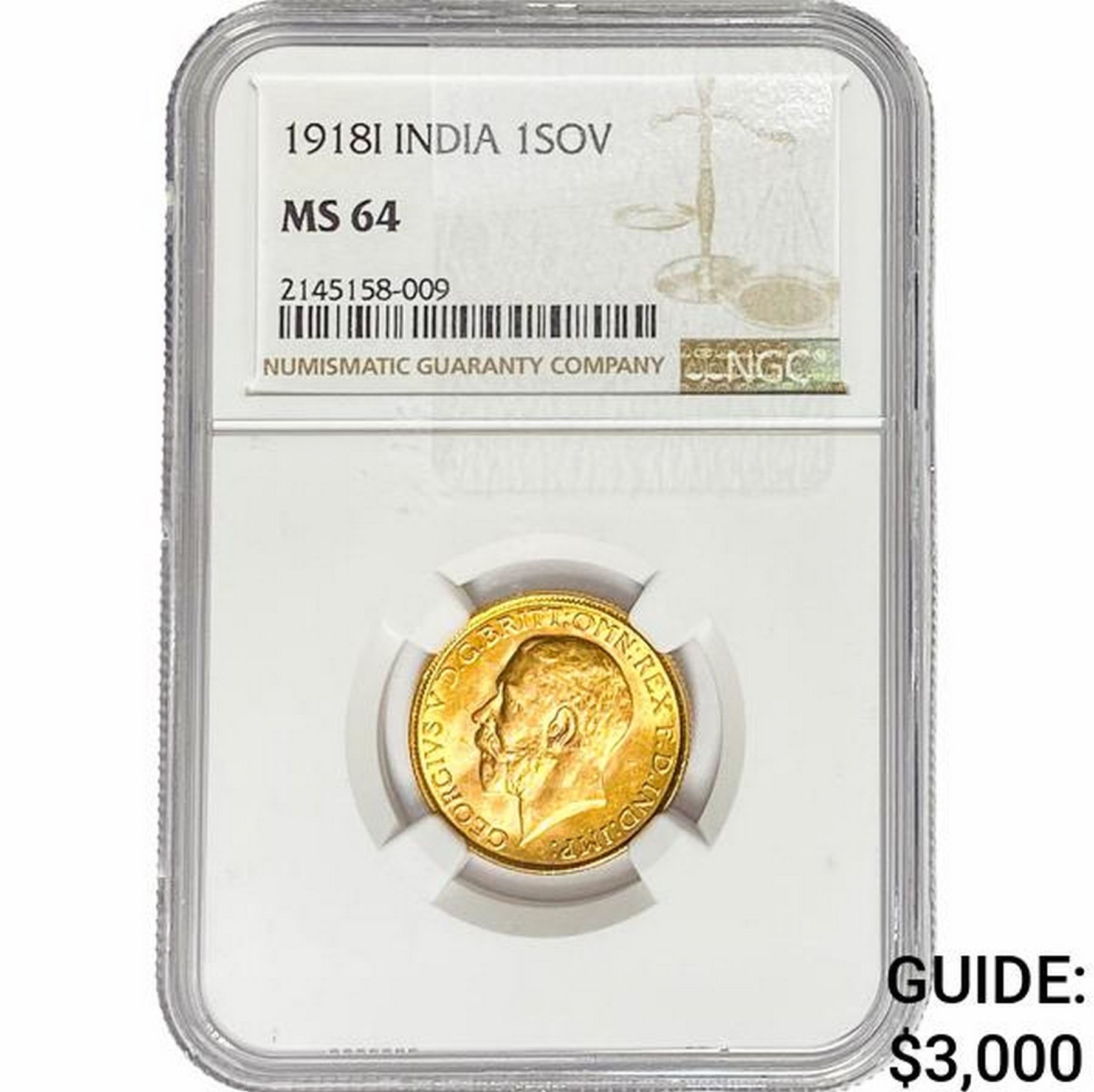 1918I India .2355oz Gold 1 Sovereign NGC MS64