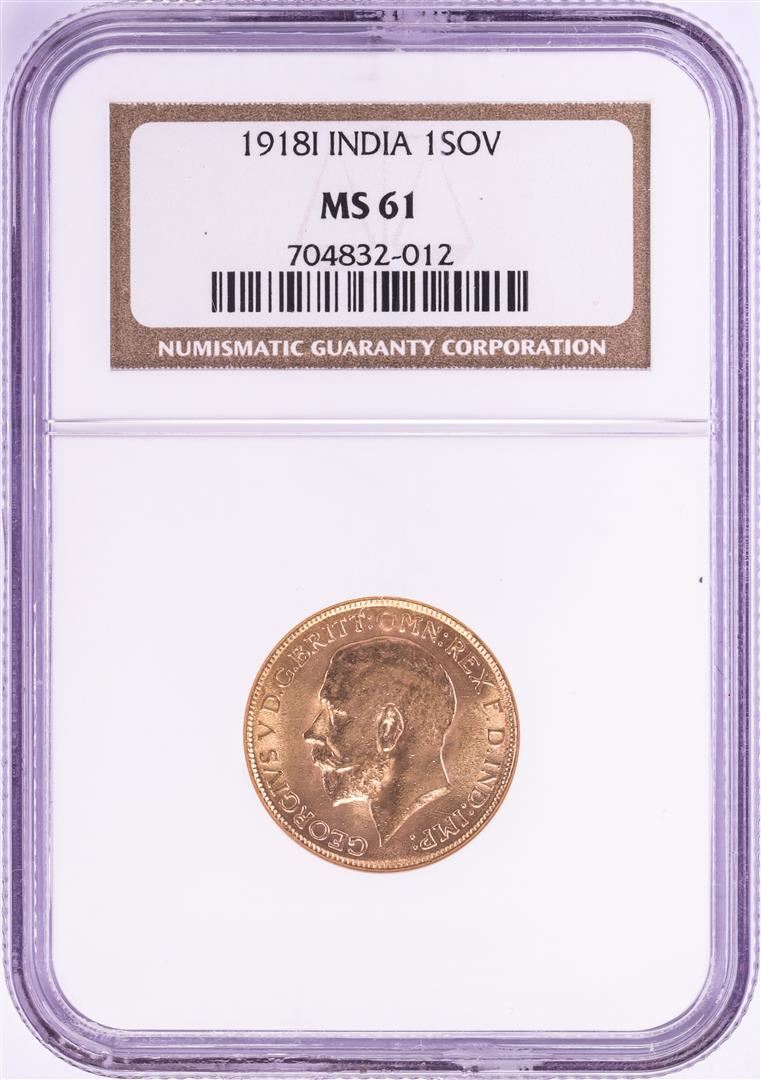 One 1918I India Sovereign Gold Coin NGC MS61. NGC Certified.