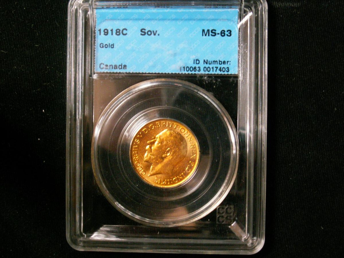 1918c Gold Sov CCCS MS63. Nice example.