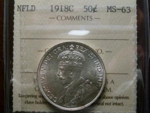 1918c Nfld 50¢ ICCS MS63. A super blast white example.