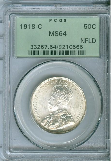1918c Nfld 50¢ PCGS MS64. Blast white with PQ look.