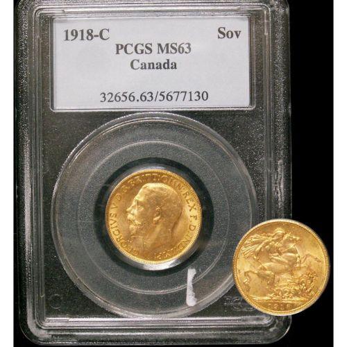 1918c Sovereign PCGS MS-63, well struck with full lustre. Scarce this nice.