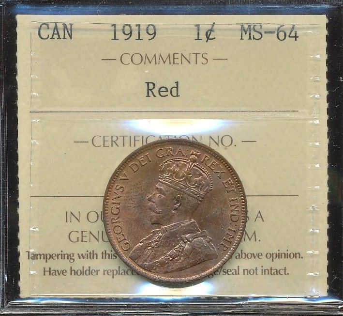 1919 1¢ ICCS MS64RD.