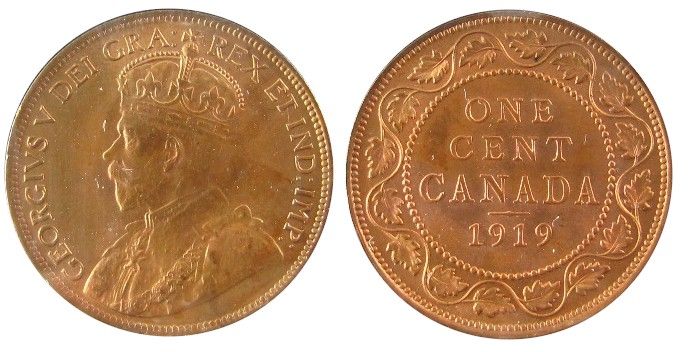 1919 1¢ ICCS MS66RD. Well struck with exceptional surfaces and clean fields. The coin has full original lustre. The best of the best. An absolute gem of a coin. The nicest example ever handled by the cataloguer. Worth a premium bid.