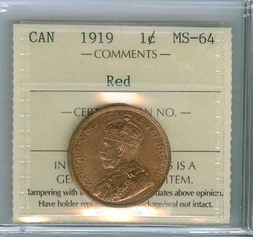 1919 1¢ ICS MS64RD. Nice well struck example.