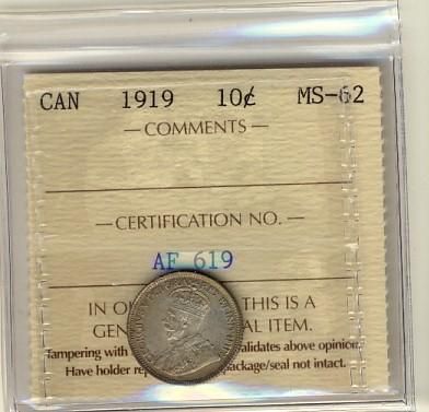 1919 10¢ ICCS MS62. Nice fancy toning.