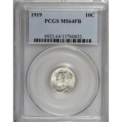 <B>1919 10C MS64 Full Bands PCGS.</B></I> PCGS Population (181/168). NGC Census: (104/69). Mintage: 35,740,000. Numismedia Wsl. Price for NGC/PCGS coin in MS64: $220. (#4923)<BR><BR><B>Coin Engraver:</B> Adolph A. Weinman<BR><BR><b>Shipping:</b> Coins & Currency (<a target="_blank" href="http://www.heritageauctions.com/common/shipping.php">view shipping information</a>)