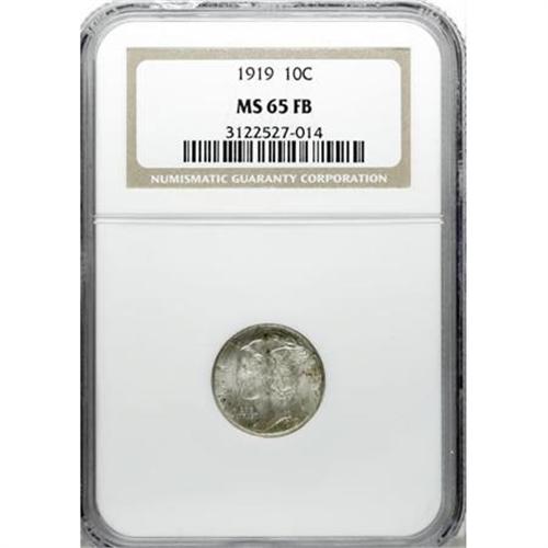 <B>1919 10C MS65 Full Bands NGC.</B></I> NGC Census: (54/15). PCGS Population (119/50). Mintage: 35,740,000. Numismedia Wsl. Price for NGC/PCGS coin in MS65: $500. (#4923)<BR><BR><B>Coin Engraver:</B> Adolph A. Weinman<BR><BR><b>Shipping:</b> Coins & Currency (<a target="_blank" href="http://www.heritageauctions.com/common/shipping.php">view shipping information</a>)
