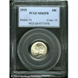 1919 10C MS65 Full Bands PCGS. This brilliant and <B>1919 10C MS65 Full Bands PCGS.</B></I> This brilliant and highly lustrous Gem is boldly struck and has pleasing preservation. Not as rare as the branch mint issues from this year, but nonetheless difficult to procure any finer. <BR><BR><B>Important notice:</B> Heritage usually auctions material at the rate of 200-250 lots per hour. On some occasions eBay Live bid software or the Internet may not be able to keep up with the pace of the auction. We recommend placing a realistic absentee bid now as insurance to avoid disappointment. Occasionally the auctioneer may eliminate or reject an eBay Live bid, and the auctioneer may also reopen a lot after the close of the eBay live bidding (usually because we missed an audience bid), and may reject your bid even if it shows you as the winning bidder. By bidding via eBay Live, you agree that Heritage may award the lot to another bidder at its sole discretion under the circumstances described above or any other reasonable circumstances. Since eBay bids are not shown to us until we open the lot on the floor, we treat those bids just like floor bids. In most cases the floor responds before the eBay bid is presented to us, due to Internet lag time, so for consistency we have made it a policy that floor bids are always considered first over tie eBay live bids. Also please note that all Heritage lots purchased through eBay Live carry a 20% Buyer's Premium. Please make sure you read the Terms and Conditions before you bid. This lot is being auctioned in conjunction with a live floor auction by Heritage Galleries & Auctioneers. All final auction and invoice information will be supplied by Heritage Galleries & Auctioneers, and all other information should be considered preliminary. Lot:5800