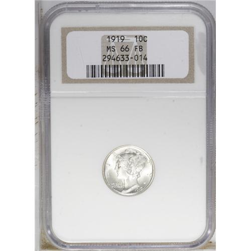 1919 10C MS66 Full Bands NGC. Sharply detailed and bri