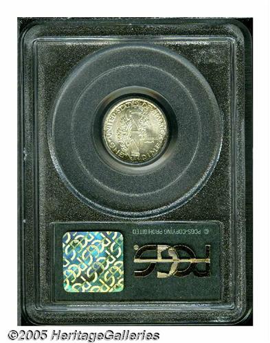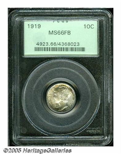 <B>1919<10C> MS66 Full Bands PCGS.</B></I> Shimmering mint luster races around each side of this sparkling early P-mint dime. Just the slightest dusting of golden toning is seen over the ice-blue surfaces. Strong eye appeal and surprisingly scarce for a coin with such a substantial mintage. Population: 43 in 66, 8 finer (5/05).