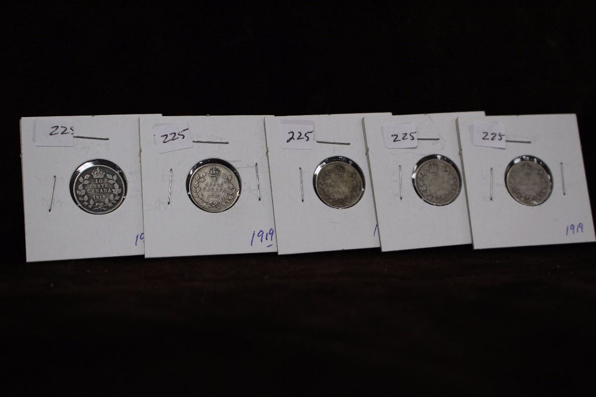 1919; 1919; 1919; 1919; 1919 Cdn. Ten Cent Coins