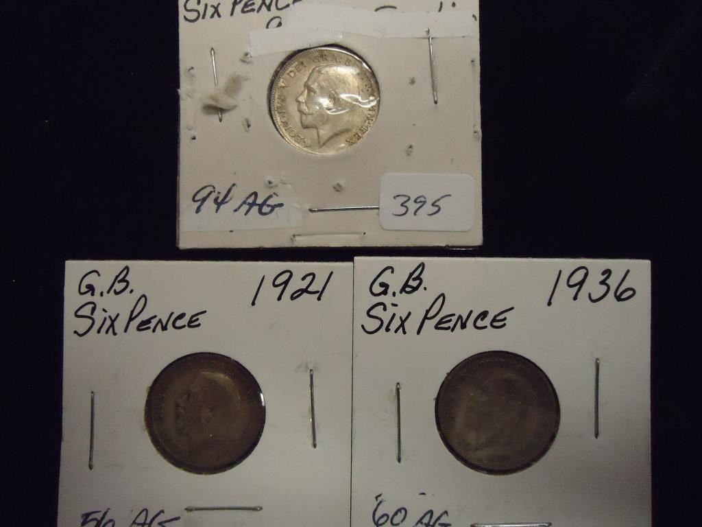 1919,1921 & 1936 GREAT BRITAIN SILVER 6 PENCE